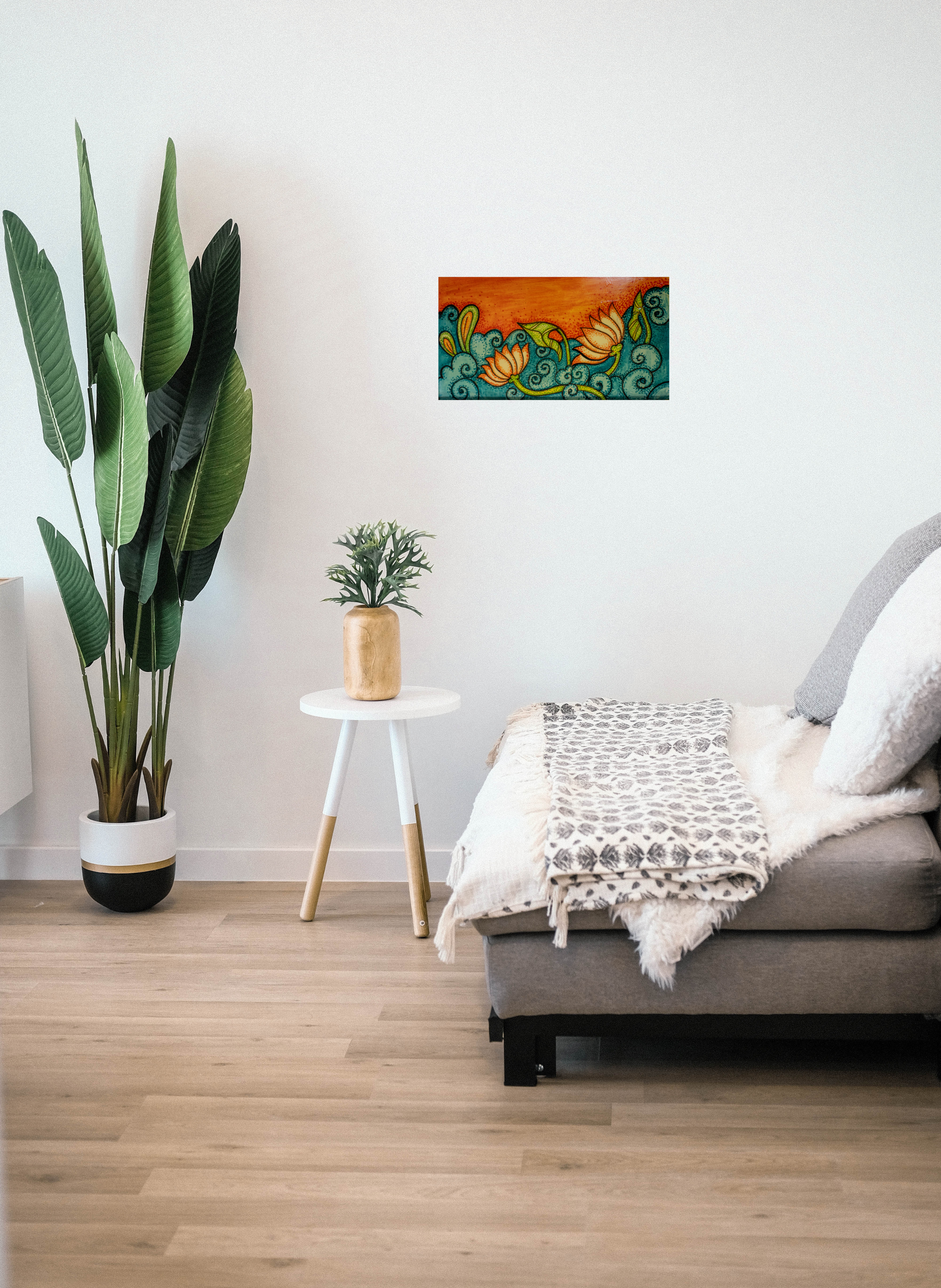 Fighting Lotus - Pen Tray - Kerala Mural (Wood base)