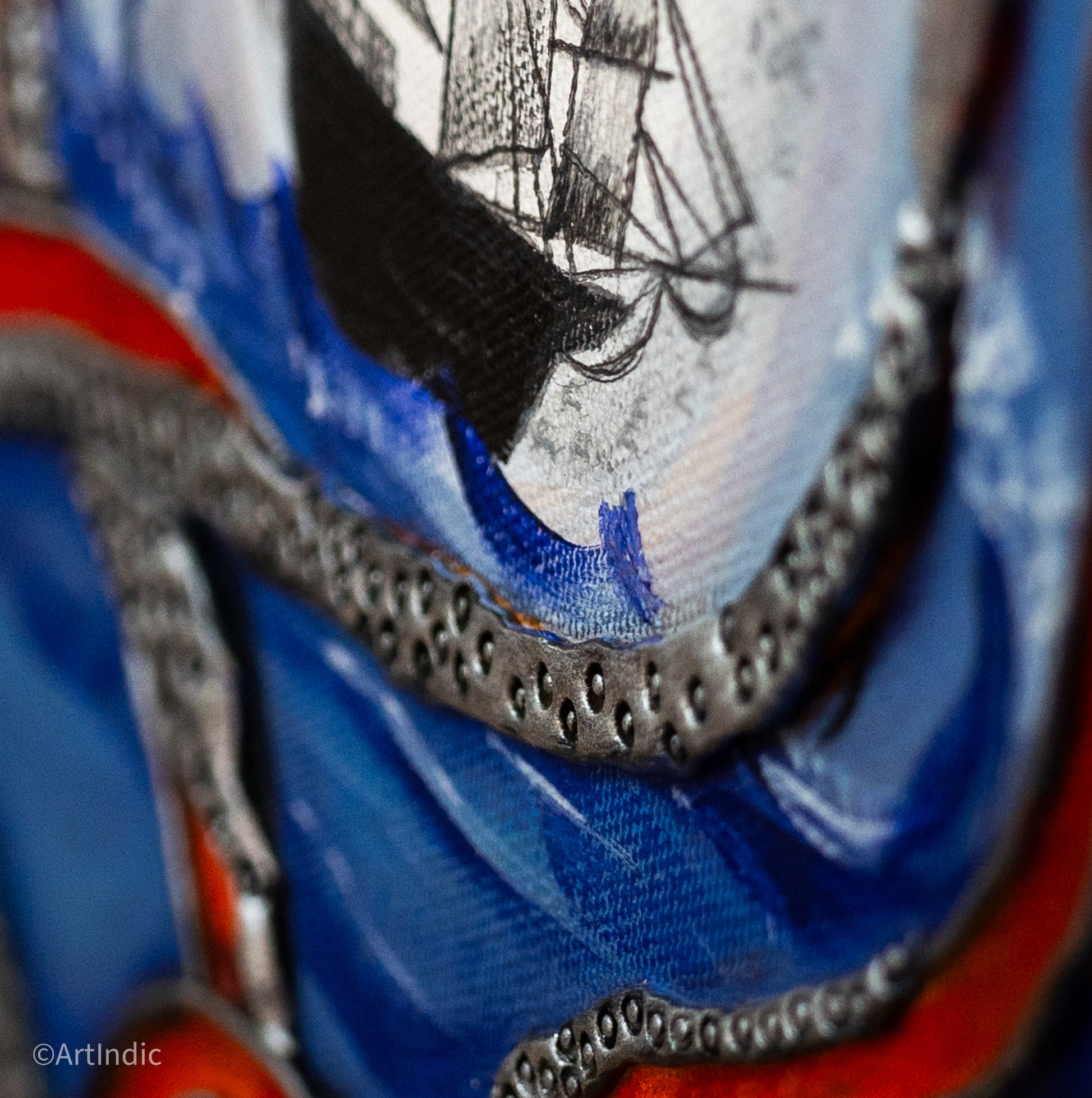 As the ship sailed on, undulating shadows broke the starry reflection. Massive tentacles rose, lightly caressing the ship's wooden frame, casting dark silhouettes against the moonlit sea.