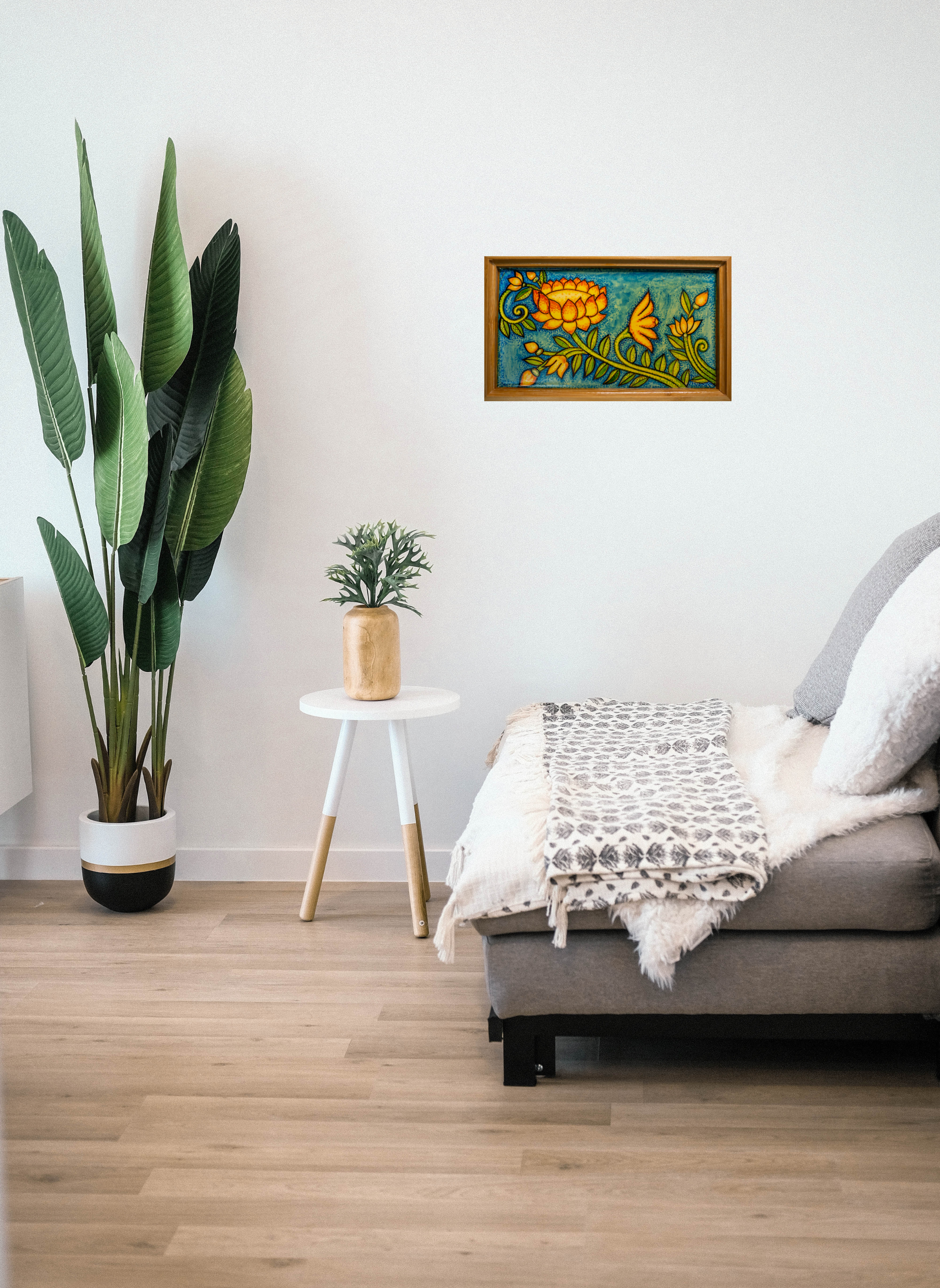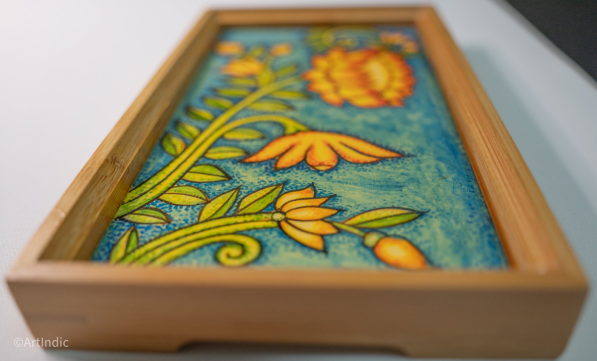 Swaying Lotus - Pen Tray - Kerala Mural (Wood base)