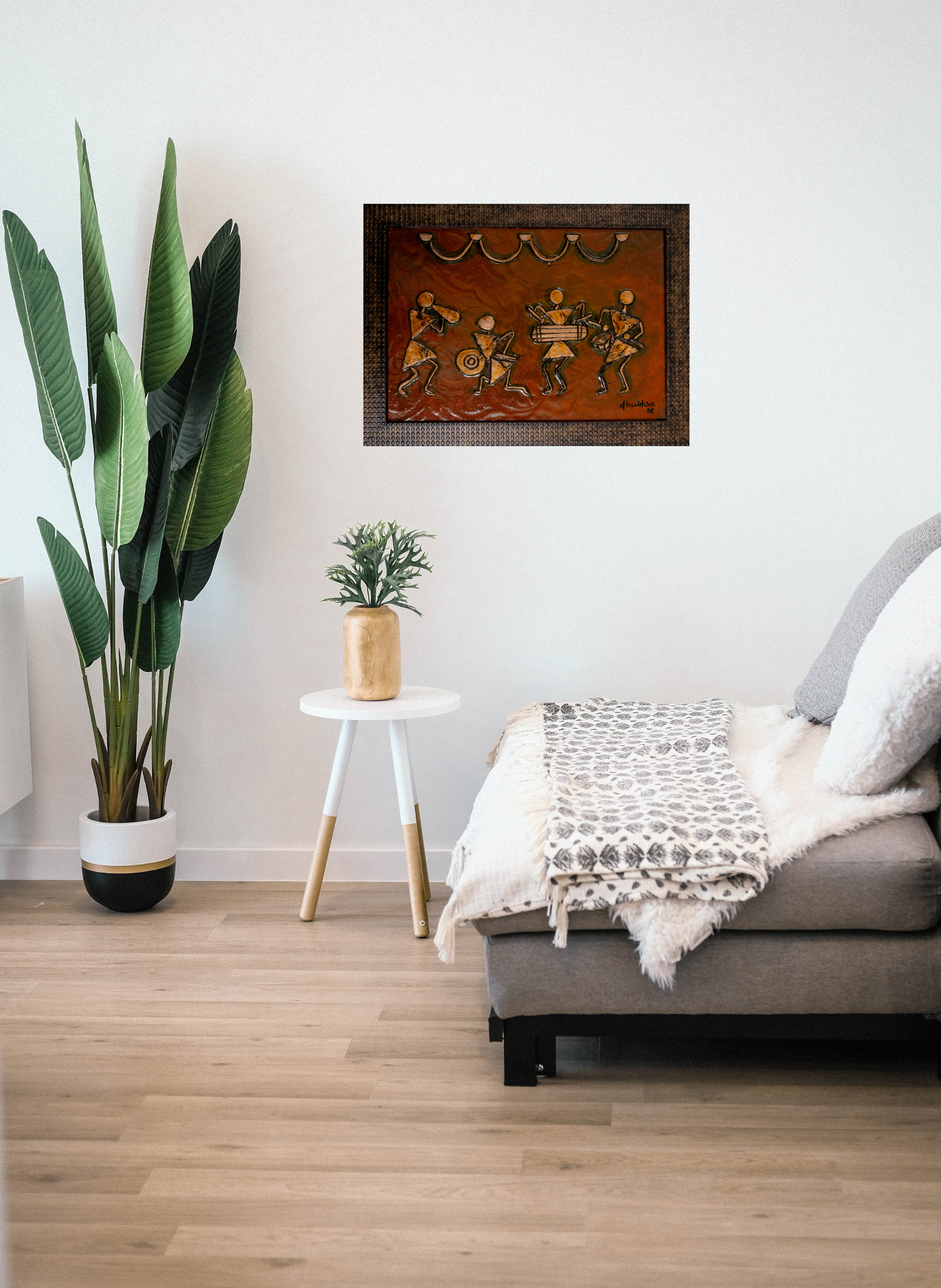 "With its simplistic, yet powerful visuals, Warli art masterfully depicts the festive spirit of Maharashtra. The drummers and dancers, often featured, symbolize a community united in celebration, their joy reverberating through the rhythm of the drums and the fluidity of the dance."