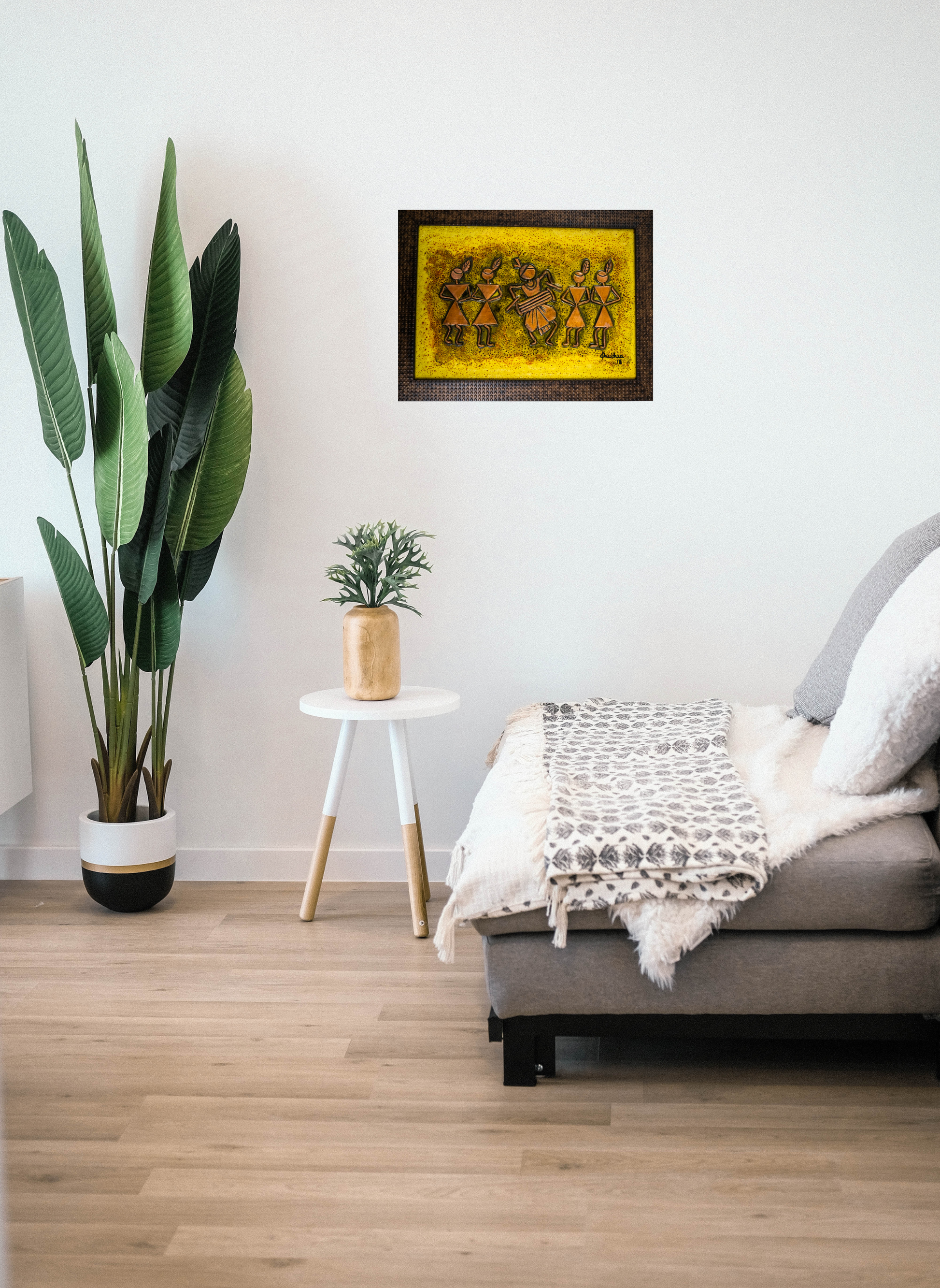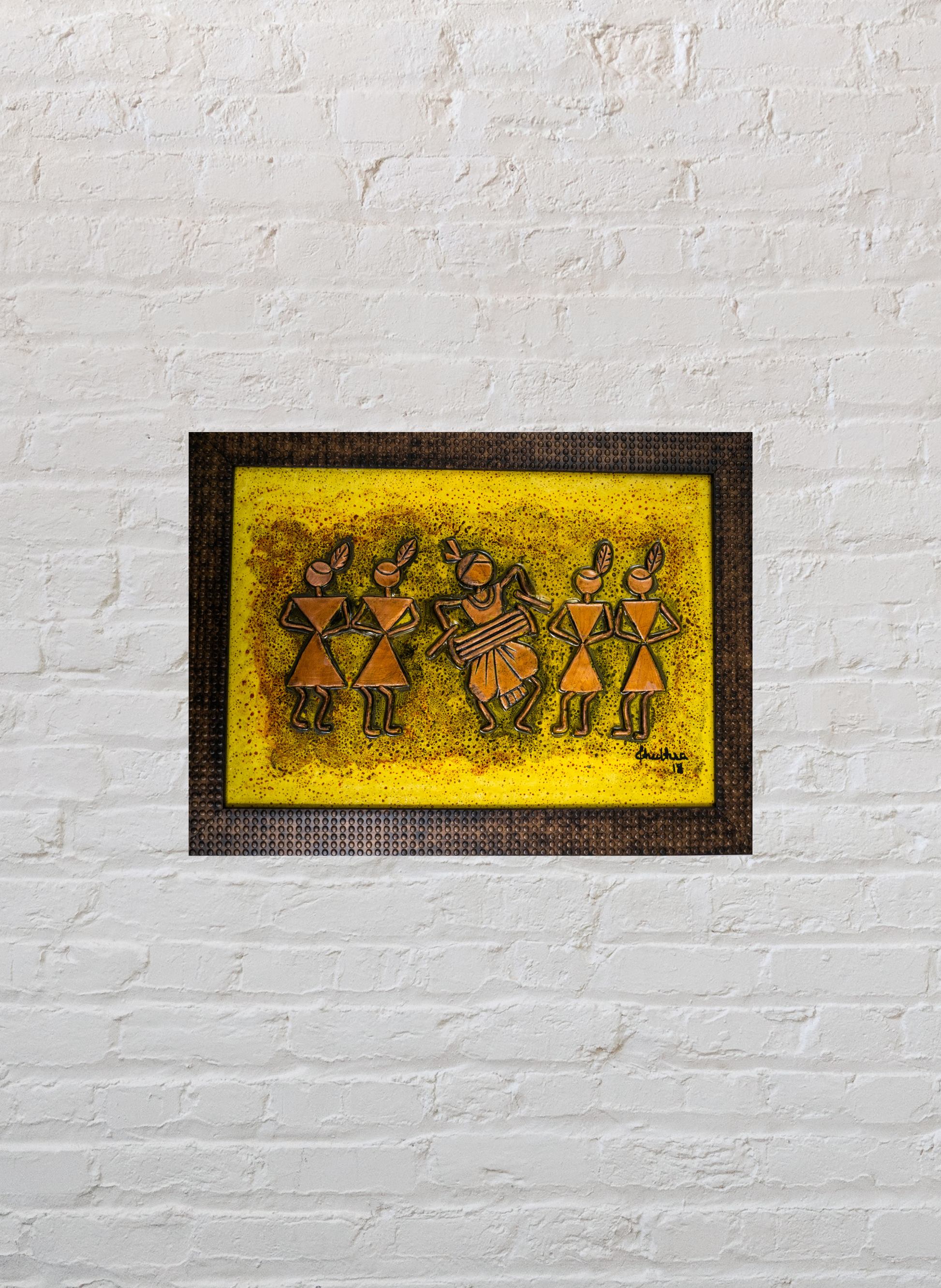 "Warli art, a cherished folk art of Maharashtra, paints a vivid picture of life, often featuring scenes of drummers setting the rhythm and dancers moving in sync. It beautifully encapsulates the rhythm of rural life and the joy of communal celebration."